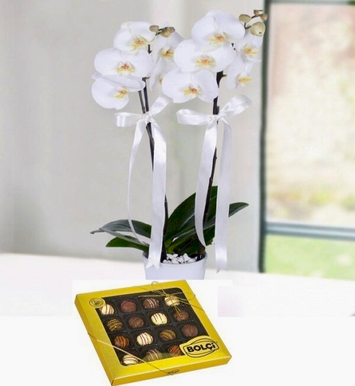 Asaletli Beyaz Orkide Seramik vazo içerisinde çift dallı beyaz orkide ile hazırlanmıştır 16 lı turf