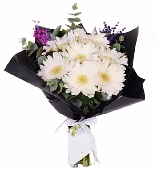 Siyah Bukette Beyaz Gerbera Buketi